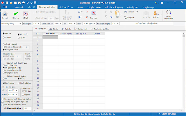 | Giao diện phần mềm bình sai Hhmaps 2016 |
