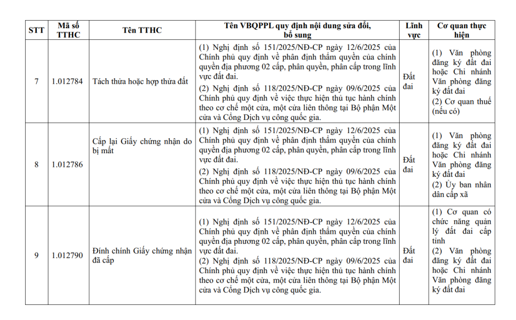 Thủ tục hành chính về quản lý đất đai thuộc cấp tỉnh